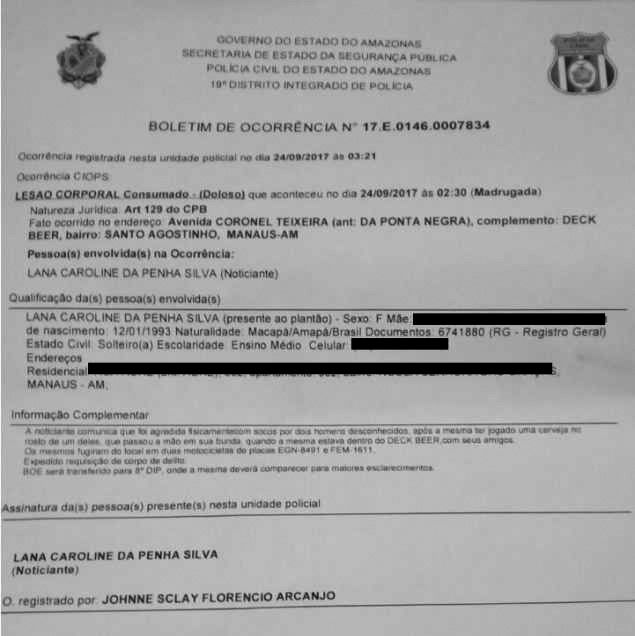 O contratado da Câmara Municipal de Manaus com o aval do vereador Caio André, foi acusado, em 2017, de agredir a estudante Lana Caroline (ver BO), no bar Deck Beer, na avenida Brasil.