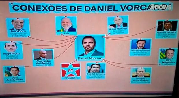 O PowerPoint exibido teria apresentado conexões políticas envolvendo o empresário Daniel Vorcaro, mas com foco em determinadas relações específicas.