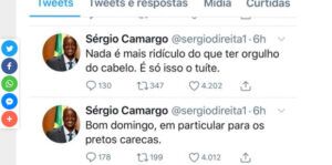 Na sexta-feira (18), Camargo tweetou artigo que tratava dos desafios enfrentados por pessoas com penteado afro na hora de usar fones. Camargo, que é careca, recomendou que negros abrissem mão dos fios: “Corta o cabelo, pô”.