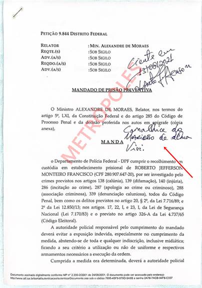 No mandado de citação, o ex-deputado federal acusado de autoria de ataques antidemocráticos deu a ciência com um recado ao magistrado responsável pelo encarceramento.