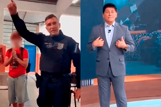9h50Ao noticiar a agressão de um policial militar contra estudantes dentro de uma escola estadual no Rio de Janeiro, a cobertura do “SBT Brasil”, que destacou a camiseta de uma das vítimas com o rosto de Che Guevara, causou revolta nas redes sociais. A abordagem do âncora César Filho está sendo acusada de justificar a violência policial registrada durante o episódio.