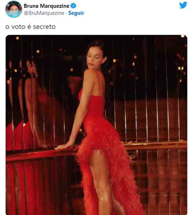 Sem citar diretamente o petista, ela postou uma foto com vestido vermelho e brincou com o jargão “meu voto é secreto”.