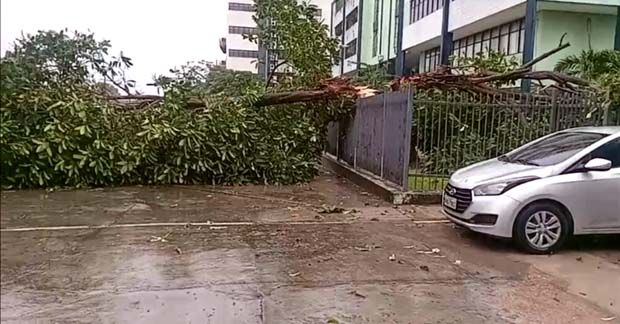 A tempestade causou diversos estragos na cidade como alagamentos e várias quedas de árvores pelos bairros.