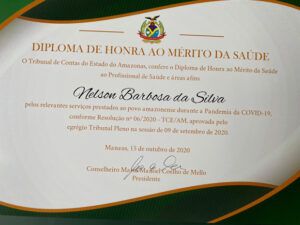 O Tribunal de Contas do Estado (TCE-AM) concedeu ao médico Nelson Babosa o Diploma de Honra ao Mérito pelos relevantes serviços prestados ao povo do Amazonas no enfrentamento da pandemia causada pelo novo coronavírus.