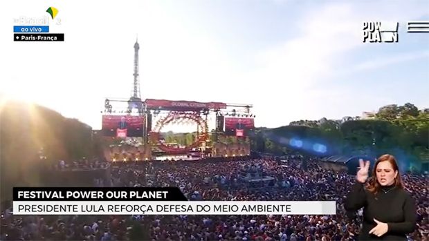 O presidente Luiz Inácio Lula da Silva discursou para uma multidão nesta quinta-feira (22) no festival Power Our Planet, na praça Campo de Marte, em frente à icônica Torre Eiffel, em Paris, capital da França.