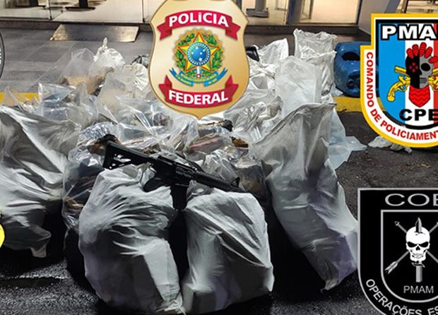 Agentes da Secretaria de Estado de Segurança Pública (SSP-AM) e da Delegacia de Repressão à Entorpecentes (DRE) da Polícia Federal (PF) apreenderam 914 quilos de maconha do tipo skunk, no domingo (30/04), no Rio Solimões. Durante o confronto, a lancha com os suspeitos e a droga pegou fogo. Além dos entorpecentes, as forças de segurança apreenderam um fuzil.
