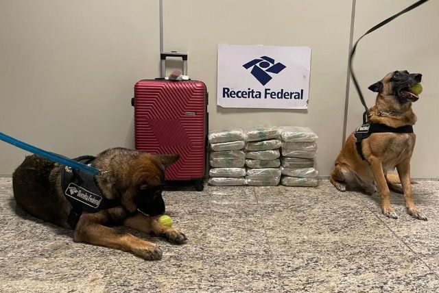 Segundo a Receita Federal, a droga foi localizada pelos cães da Equipe K9 e confirmado com uso do escâner e da verificação física.