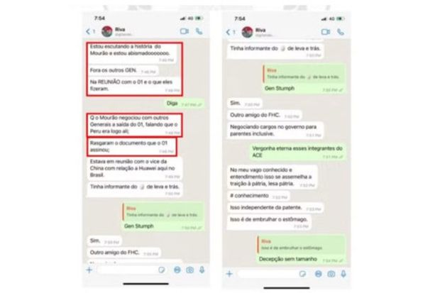 As informações surgiram a partir da análise de conversas entre o ex-ajudante de ordens de Bolsonaro, o tenente-coronel Mauro Cid, e o coronel Sérgio Cavalieri, incluindo prints de mensagens enviadas por um interlocutor identificado como Riva. Nos diálogos são mencionados detalhes de uma reunião entre Bolsonaro, o então vice-presidente Hamilton Mourão, e generais.